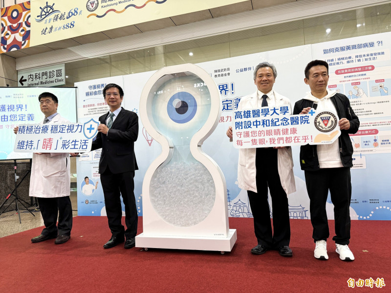 高醫與陳振武防盲基金會、藥廠12月5日前在醫學大樓大廳舉辦眼科衛教展覽,今(2)日特別邀請藝人郭子乾擔任衛教大使,呼籲眼睛及早檢查和治療的重要性,郭子乾分享,自己的岳母就是黃斑部病變的患者,半年內眼睛漸漸看不到,甚至因此不小心摔落樓梯骨折。
