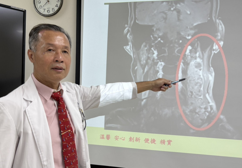 鄧政宗說,患者3個月前才做過健檢,發現腫瘤時已經如此巨大,且緊臨頸部大動脈,腫瘤往肌肉層生長快速,因此沒有出現聲音沙啞、喉嚨卡卡的頭頸癌典型症狀,但腫瘤再長大恐會侵襲淋巴或是頸動脈。