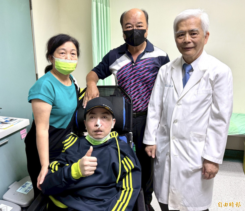 王男經營多年輪胎公司被迫關廠,王男父母不放棄希望,去年8月接受烏日林新醫院神經外科顏精華醫師診治,進行腦膜清創修補、水腦積水引流及神經細胞活化藥物治療,逐步穩定腦壓、恢復腦神經功能,術後4個月奇蹟甦醒恢復完整意識,經復健療程後舉起右手稱「感謝顏醫師(救命之恩)」。