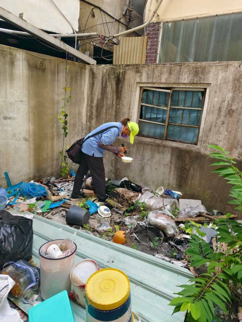 市府防疫團隊立即針對疫情發生地區啟動擴大疫調採檢、地毯式孳生源清除、緊急噴藥滅蚊及環境整頓等防治工作,特別於群聚疫情社區進行病媒蚊密度調查,發現該區住家周邊家戶囤積大量容器雜物,共查獲多達61個積水容器,其中29個孳生大量病媒蚊幼蟲及成蚊,立即開單告發並清除積水。