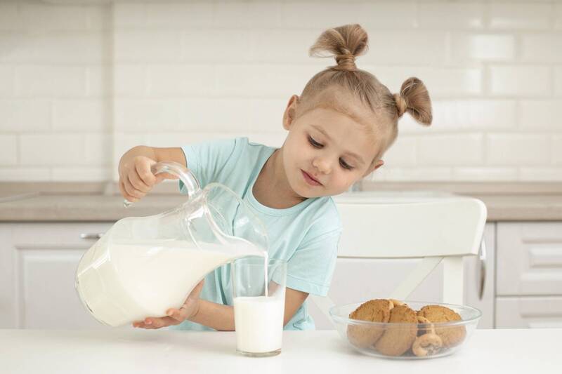 ●鮮奶:也是乳品類的一種,並可作為鈣質主要來源,以一杯240毫升的鮮奶來說,大約含有250毫克的鈣質,根據《幼兒期營養手冊》建議,1-6歲的幼兒每日應攝取2杯,1杯等於240毫升。溫度冰或熱皆可,基本營養價值不變,就看孩子的腸胃狀況與接受度來調整。
