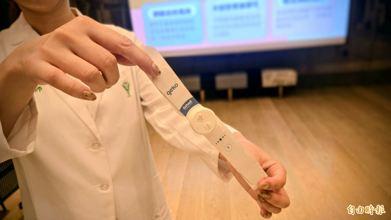 此外,奇美醫院也展示Geko循環刺激器,這是一款可穿戴式貼片裝置,透過低強度電刺激腓腸神經,促進小腿血液回流,協助孕產婦與術後病人預防靜脈血栓,降低肺栓塞發生風險。