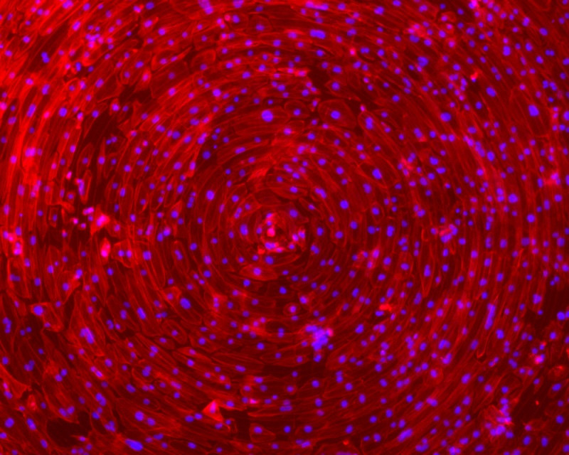 許聿翔表示,團隊研究心臟器官晶片,關鍵是心肌細胞培養,傳統培養皿作法,其細胞排序紊亂,跳動的同步性低,需好幾個月至半年,才能達模擬心跳的同步化,團隊透過溝槽結構與細胞力學,加上特殊基材,「騙」心肌細胞如在體內環境,僅14天到15天左右,就達同心圓收縮的同步化,可進行後續測試心臟藥物。