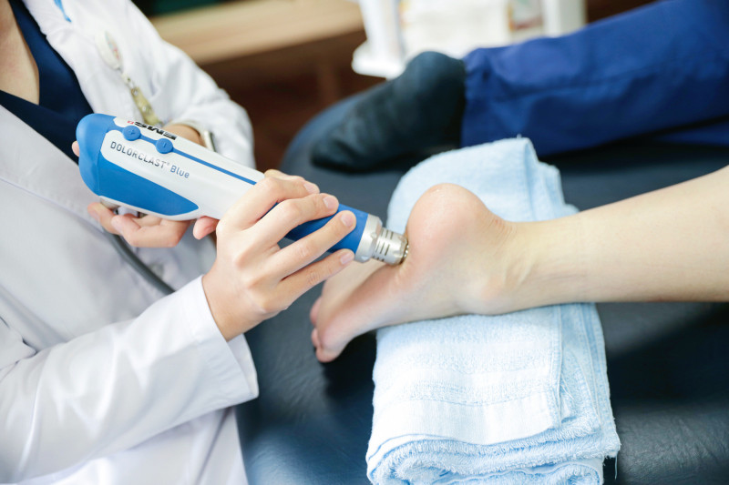 在葉書銘評估與建議下,林女士接受震波治療搭配物理治療運動訓練,藉由高能量機械波刺激病灶,引發身體組織再生及修復,同步阻斷疼痛神經傳導,達到止痛效果,接著,針對足踝設計的肌力與柔軟度訓練,加強關節穩定度,經過3次療程後,疼痛症狀改善超過9成。