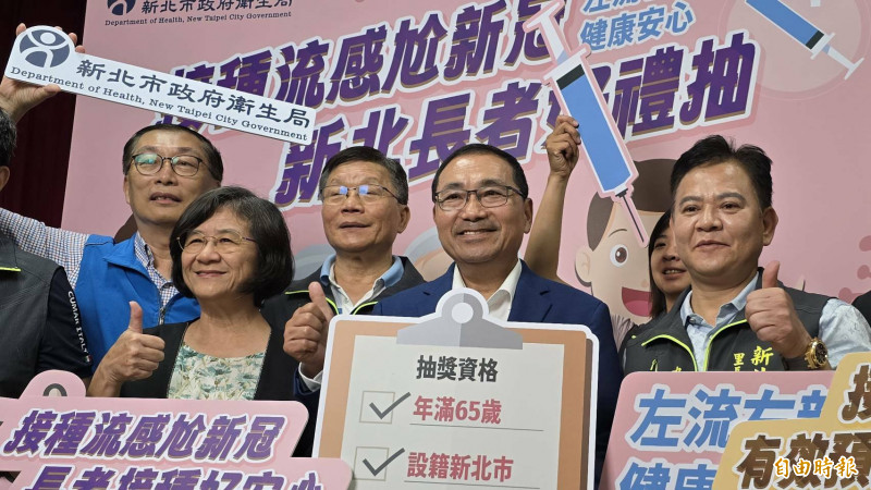 侯友宜說,設籍新北市65歲以上市民在新北接種疫苗,還可參加「接種流感尬新冠,新北長者好禮抽」活動,「週週抽」送千元禮券,期末抽獎獎項包括iPhone 17等,呼籲符合資格民眾儘早接種。
