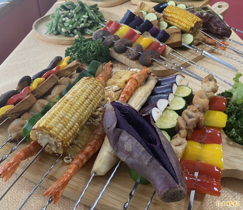 低碳烤肉,中榮營養師林柔懷表示,選擇當季在地的好食材,低碳低脂更美味,全穀、蔬菜類可選擇地瓜、玉米、馬鈴薯、芋頭、山藥,以及筊白筍、櫛瓜、玉米筍、青椒、絲瓜、金針菇、甜椒、四季豆、杏鮑菇、香菇;植物性蛋白質可選豆腐、豆干、豆包、毛豆;動物性蛋白有養殖海鮮類、雞肉(如雞里肉、雞胸肉、雞腿)、畜牧豬肉(如瘦豬後腿肉、瘦豬前腿肉)。