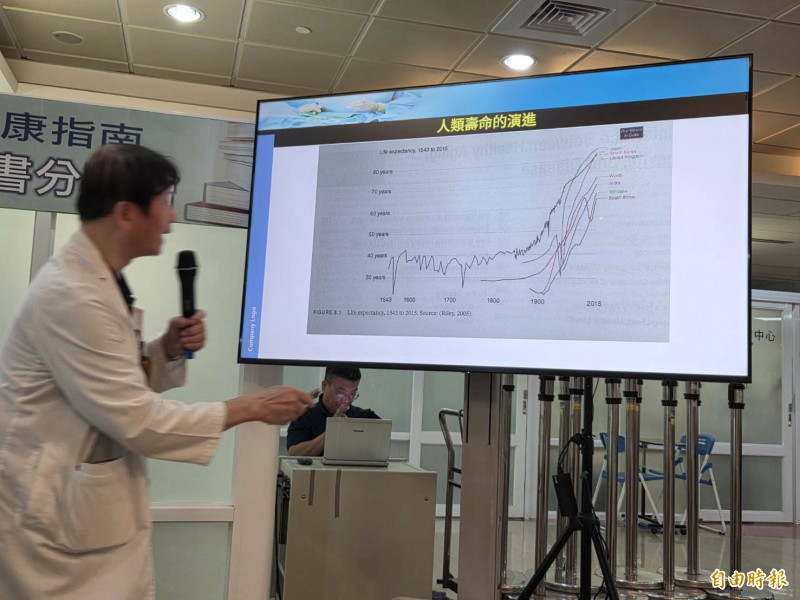戴在松今也分享自己的養生方法,早上泡五穀粉,中午時常因看診忙碌幾乎不休息,晚餐吃7分飽;歷年研究顯示,早年10大死因多為急性感染疾病,隨醫學發達,現在10大死因以慢性疾病為主,呼籲民眾要達到「無疾而終」目標,轉變健康生活,定期健康檢查及施打疫苗預防急性感染疾病,減少罹患慢性疾病風險,延長健康的壽命。