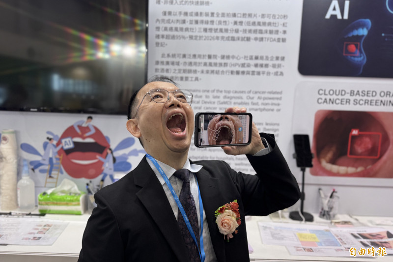 2025台灣醫療科技展今(4日)起連續4天在南港展覽館盛大登場。台大醫學院放射線科主任陳世杰說,現行口腔癌篩檢多半從問卷找高風險族群,再靠醫師目視或觸診判斷,這樣的做法其實「沒圖沒真相。」這套AI系統把深度學習模型直接用在口腔影像分析上,只要依指示拍攝8張口腔照片,就能在1分鐘內完成病灶風險分級。