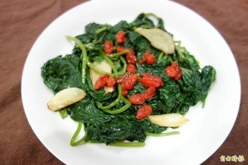 陳冠蓉說明,地瓜葉的營養亮點,每100g地瓜葉: