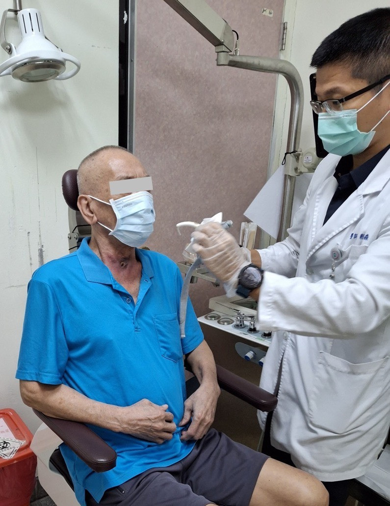在萬念俱灰之際,潘先生抱著最後希望轉診至國軍台中總醫院,耳鼻喉科醫師賴文森詳細檢視影像與病況後,發現腫瘤雖位處關鍵部位,但仍保有「保留喉部功能」的治療空間,隨即啟動癌症中心多專科團隊,整合耳鼻喉科、放射腫瘤科及影像醫學科,為潘先生量身擬定治療策略。