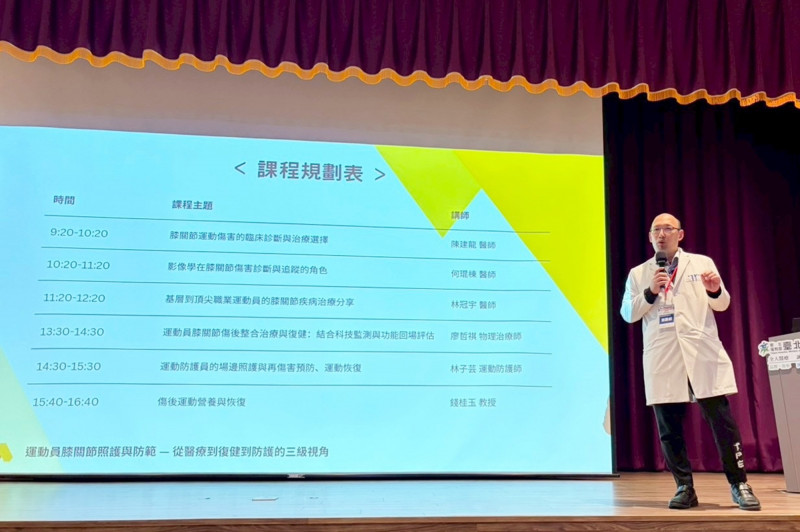 衛福部台北醫院指出,研習以運動員實際需求為核心,由運動醫學醫師、物理治療師、運動防護員與營養專家從第一線實務出發,深入解析受傷機轉與生物力學特性,並結合X光、MRI與超音波影像判讀,協助運動員與防護團隊更精準掌握傷勢狀態,並整合運動營養與恢復策略,建構可被驗證、複製的膝關節傷後照護與安全回場決策模式。