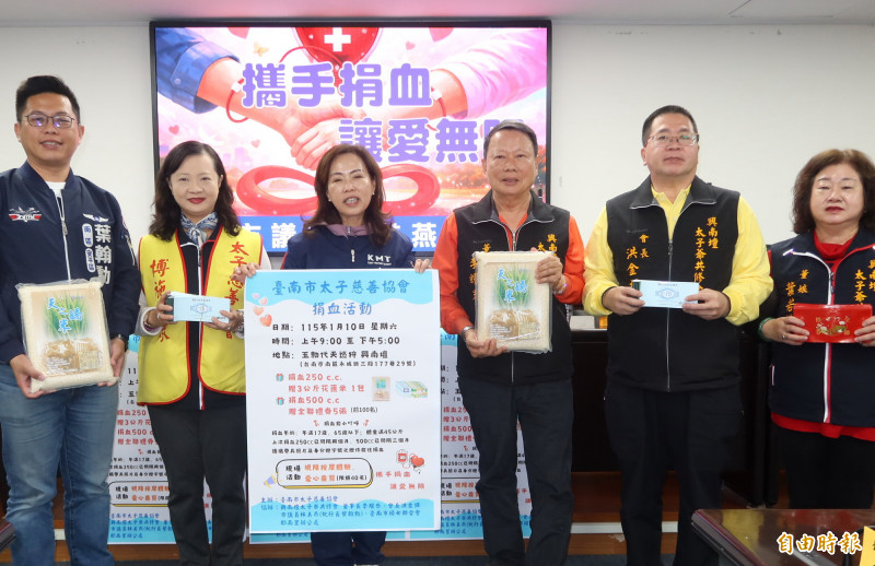 〔記者蔡文居/台南報導〕這幾天因天氣太寒冷,捐血量驟降,台灣各地血庫都呈現血荒的情況,台南市也嚴重缺血。台南市太子慈善協會特別於本月10日(週日)舉辦捐血活動,希望各界人士踴躍挽起衣袖,用實際行動來紓緩血荒的危機,讓社會充滿愛與關懷。