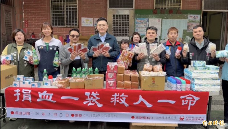 天氣冷,捐血的民眾相對少,北部地區最近缺血嚴重。二老婆美俥聯盟和市議員施偉政、張顥瀚與陳宜今天上午在中山區德和里民活動中心舉辦「將愛遠傳」的捐血活動。由於非假日,主辦單位向全聯及善心人士募集了許多物資,其中有100片烏魚子。