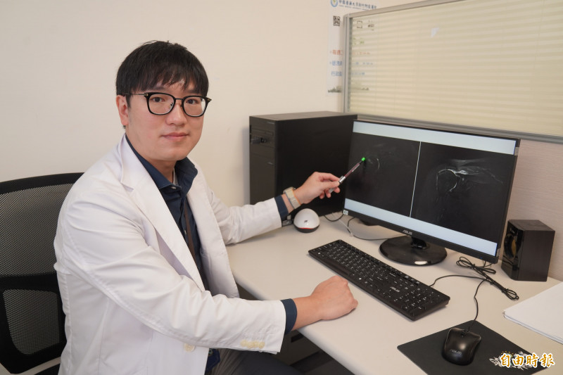〔記者黃美珠/新竹報導〕60歲的女老師肩膀痛了3個月,穿衣、提包、寫黑板都很困難,夜裡更是痛到無法安眠,還以為是常見的五十肩。沒想到中國醫藥大學新竹附設醫院骨科醫師葉詩翰檢查卻發現,她是患了常見但一般人普遍不知的「巨大旋轉肌袖撕裂」,他花2個小時,用微創關節鏡旋轉肌袖修補,再結合「自體肱二頭肌轉位術」增強修復後,女老師住院3天就順利出院,現在抬手寫黑板不再疼痛無力。