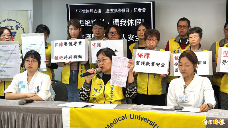 柯心炫亦提及,多數護理人員連勞工基本的月休8天都休不到,院方常以人力不夠直接換錢或換休,若排班不出勤就是曠職處理,事實上,勞工是可主表張不挪移國定假日、假日,依法要經過勞工同意,目前全院有11人拒絕春節國定假日出勤,但勞工協商也沒用,只回應醫療全年無休。