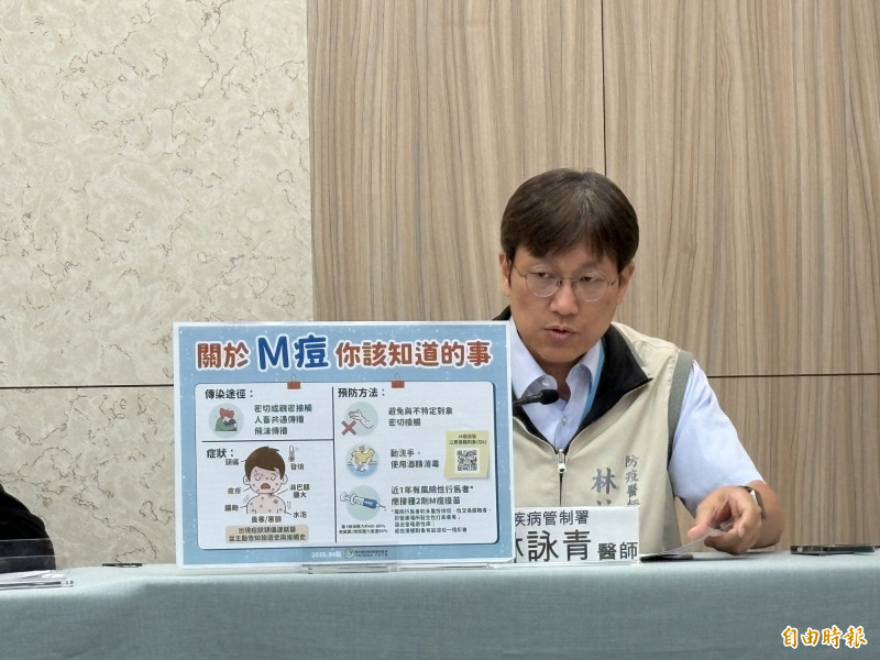 此外,林詠青表示,前述各案暴露期間均沒有國外旅遊史,但均曾與不特定陌生異性對象發生性行為,其中40多歲男性自述有性交易、30多歲男性有相約性行為,提醒民眾,M痘潛伏期可長達21天,部分個案在出現症狀前1至4天就有傳播能力,目前國內M痘疫苗庫存充足,呼籲符合公費資格的民眾儘速接種。