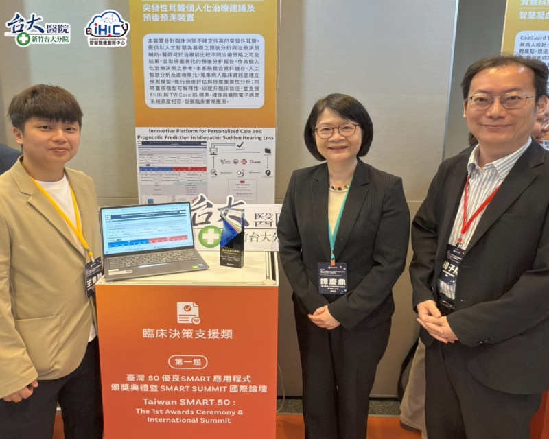 〔記者黃美珠/新竹報導〕新竹臺大分院研發的「突發性耳聾個人化治療建議及預後預測裝置」,在首屆「臺灣50」優良SMART應用程式115件競賽作品中,拿下「臨床決策支援類」大獎,未來將進一步全面接軌FHIR與TW Core IG國際標準,確保與電子病歷無縫整合,用於跨院擴散與規模化應用。