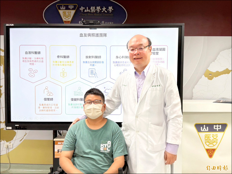 30歲的傅先生為罕見重度B型血友病合併過敏性抗體患者,因缺乏凝血因子經常自發性出血,歷經消化道大出血、2次腦出血及拔牙後出血,多次命在旦夕,留下嚴重關節病變,只能仰賴輪椅代步,所幸經皮下注射再平衡藥物,1年多來不再嚴重出血。