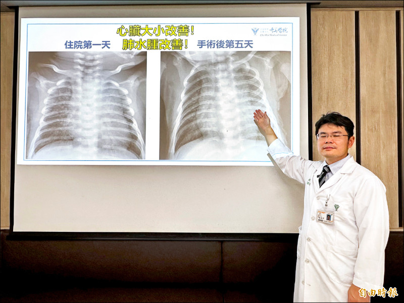 奇美醫院兒科部兒童心臟科主任陳俊宇表示,開放性動脈導管(PDA)屬於先天性心臟病的1種,發生率約1/1000。原本應該在新生兒出生數日內自動閉合的血管,若未正常關閉,血管異常分流,會導致心臟負擔加重,可能引發急性心臟衰竭、呼吸喘、食慾不振、體重減輕,甚至反覆肺部感染等併發症,若未及早介入治療,長期可能造成更難處理的肺動脈高壓、心室肥厚,甚至心臟衰竭或猝死,錯失最佳手術時機。