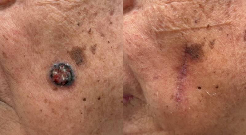 皮膚基底細胞癌(Basal Cell Carcinoma,BCC)是台灣很常見的皮膚惡性腫瘤,通常好發於臉部、鼻樑、耳朵、頸部等長期曝曬陽光的部位。主要危險因子包括:紫外線暴露、年齡增長、白皙膚色、免疫抑制及家族病史。謝先生年事已高,推估年輕時,常接受陽光曝曬,沒有注重防曬,又在屏東紫外線較強的地區,為高風險族群。