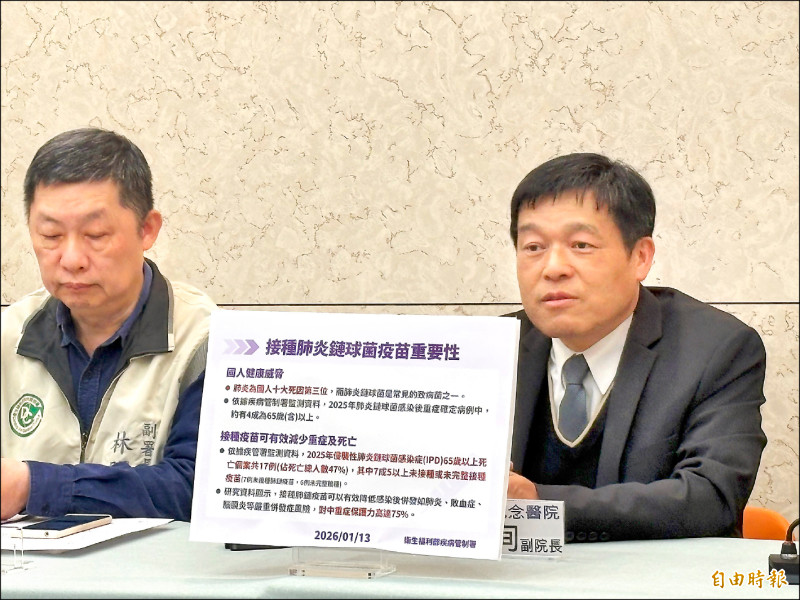肺炎長年高居國人10大死因第3位,其中肺炎鏈球菌是造成重症與死亡的重要病原。疾管署昨公布,國內侵襲性肺炎鏈球菌感染症(IPD)2025年累計347例病例,創近5年新高,其中36人死亡,65歲以上長者約占4成。醫師指出,接種肺炎鏈球菌疫苗可有效降低肺炎、敗血症與腦膜炎等重症風險,中重症保護力達75%。今年起,公費疫苗政策升級,符合資格者自1月15日起,只需接種1劑新型20價疫苗,即可獲得完整保護力,預估245萬人受惠。