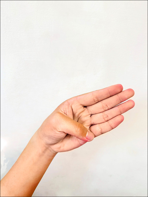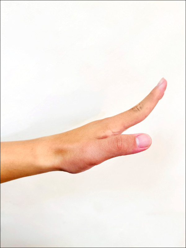 將大拇指收進手心(圖2),用其餘4指包住大拇指形成拳頭,接著慢慢地將手腕往小指方向彎曲(圖3),若大拇指根部出現明顯疼痛,可能就與媽媽手有關。