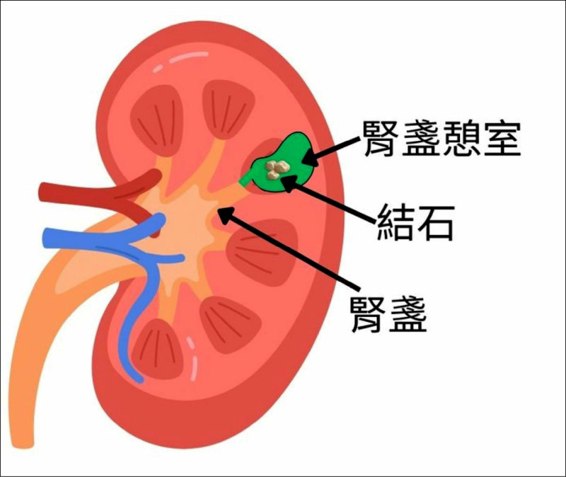 台北慈濟醫院泌尿科醫師鐘伯恩表示,腎盞憩室是1種較罕見的先天性腎臟結構異常,發生率約0.2%至0.6%,由於憩室內尿液排空較差,容易造成尿液滯留並形成結石。